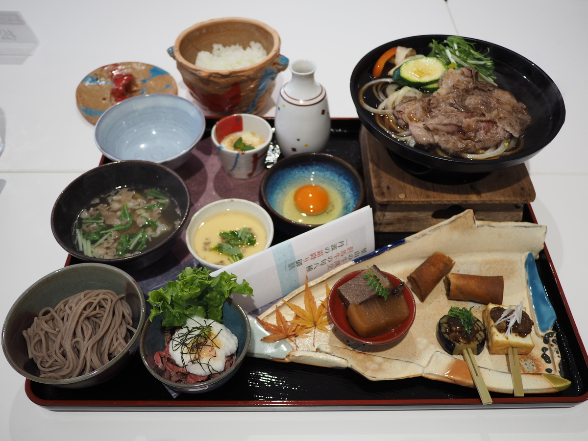 兵庫県産の黒毛和牛・但馬どり・神戸ポークに地元の野菜や調味料を使った、まさにお肉三昧の御膳です!