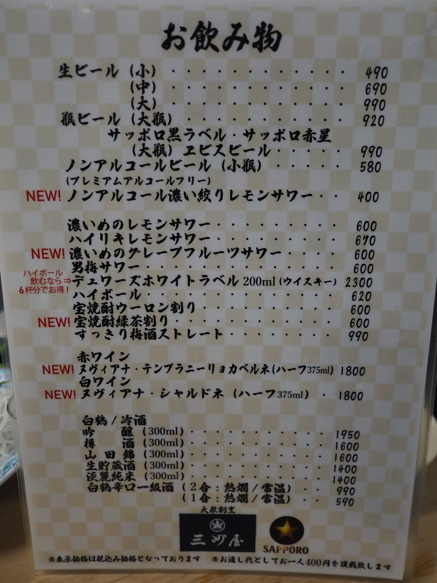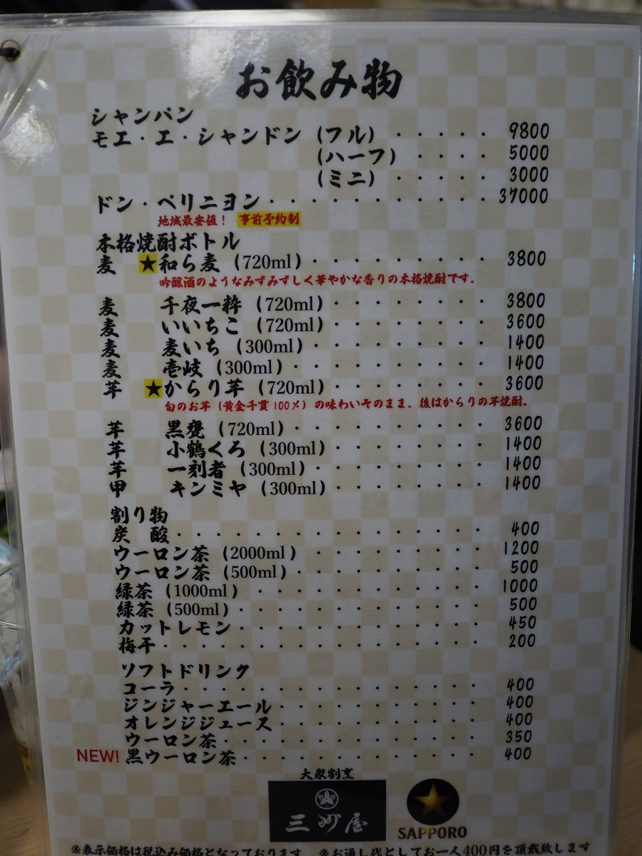 大瓶920円税込、お通し400円税込で、これだけで1,320円税込です(^^;