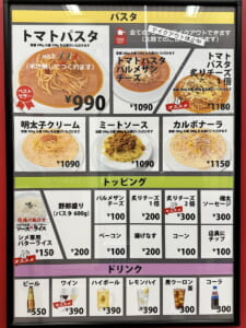 「トマトパスタ」(990円税込)、「炙りチーズ2倍」(+300円税込)