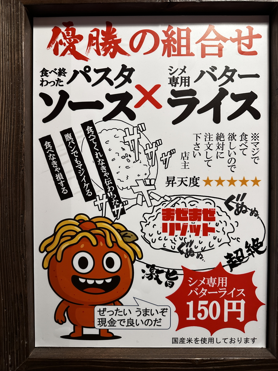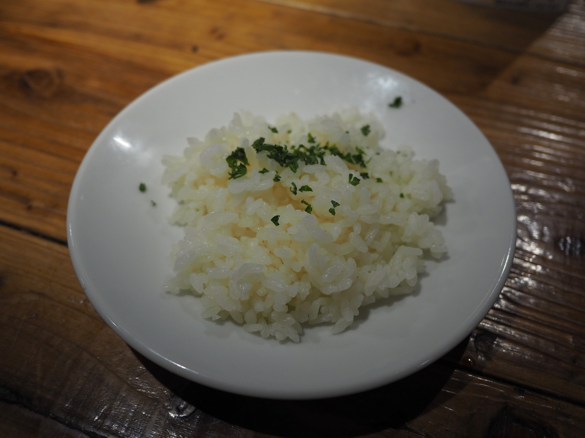 酸味とにんにくの効いたソースにバター風味のご飯が絶妙にマッチしてめちゃくちゃ旨い!
