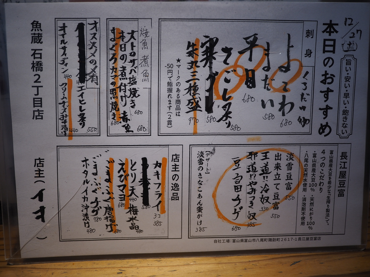 本日のランチは石橋阪大前にある居酒屋「酒スタンド 魚蔵 石橋2丁目店」に行きました。
