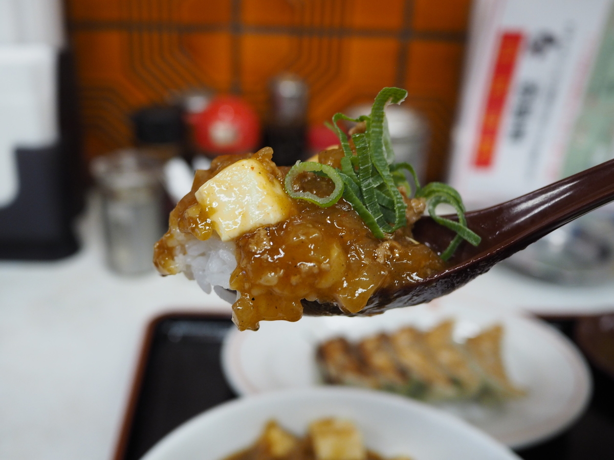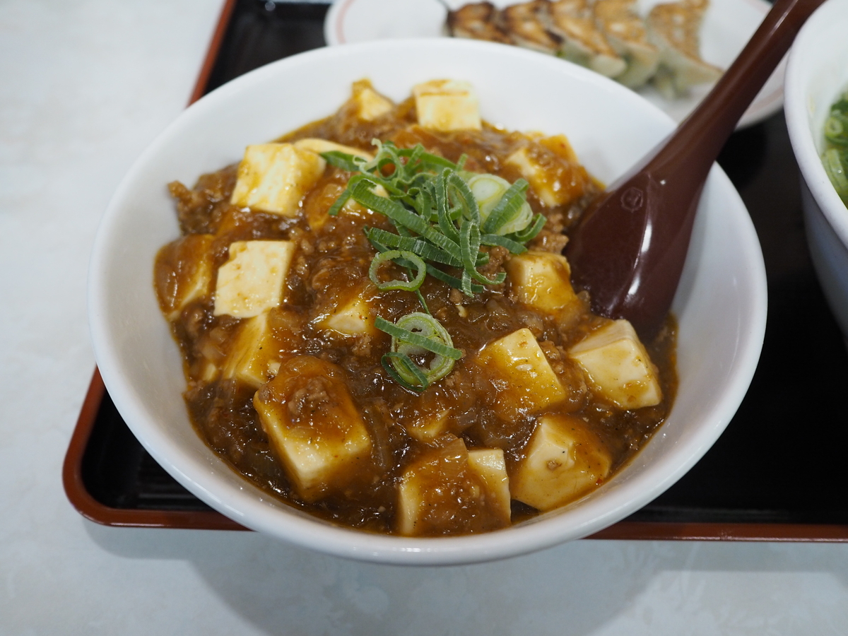 丼は、「焼き飯」、「中華丼」、「天津飯」、「マーボー丼」から選べるので麻婆丼を選択。
