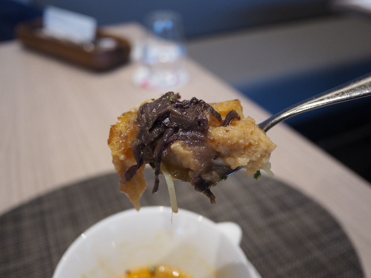 色んな具材がとてもたくさん入っていて燻製チーズのブルスケッタにスープがよ~く染みてめちゃくちゃ旨い!