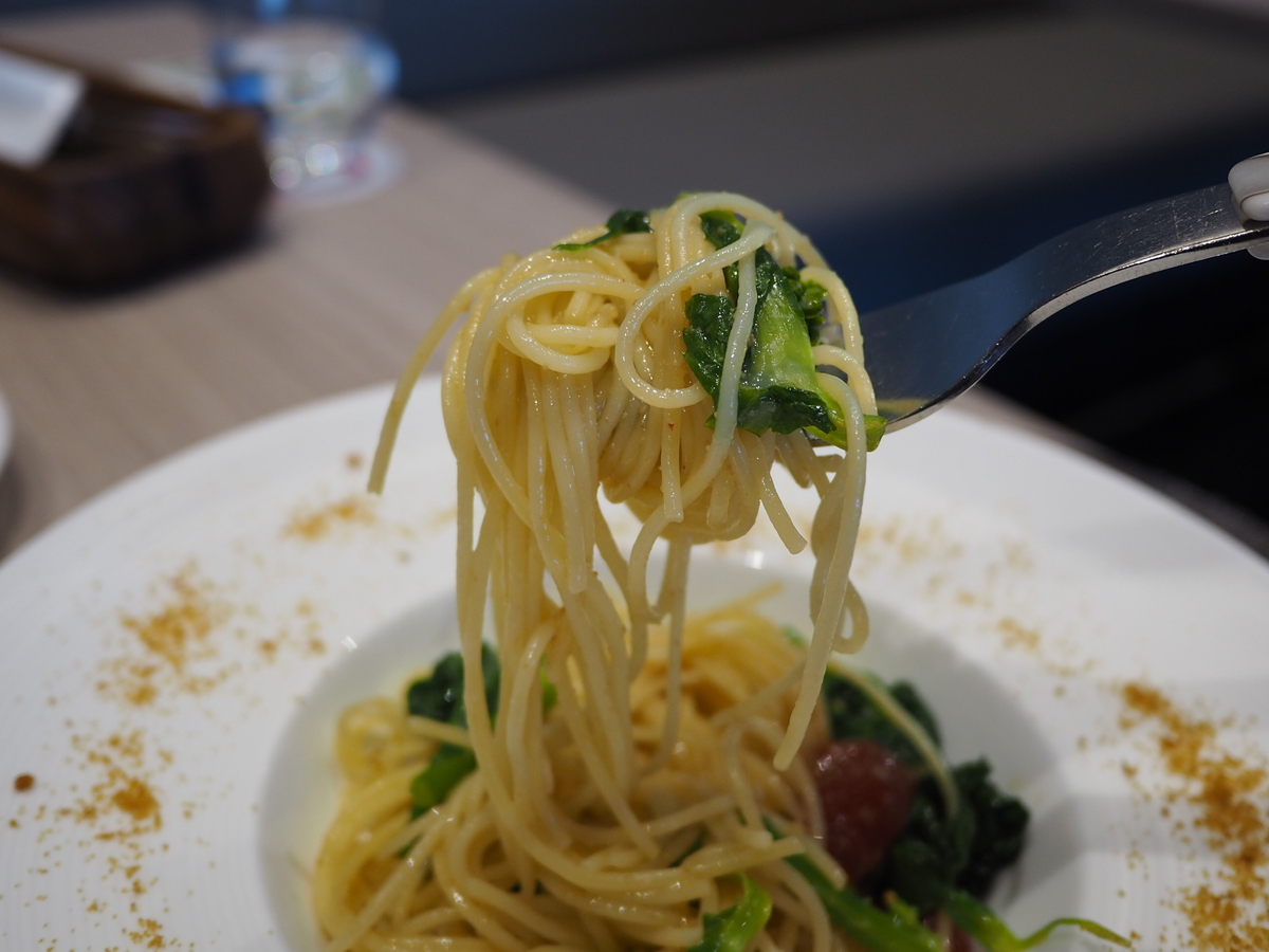 絶妙なアルデンテのパスタにカラスミの旨味と菜の花の爽やかな風味が絡んでめちゃくちゃ旨い!