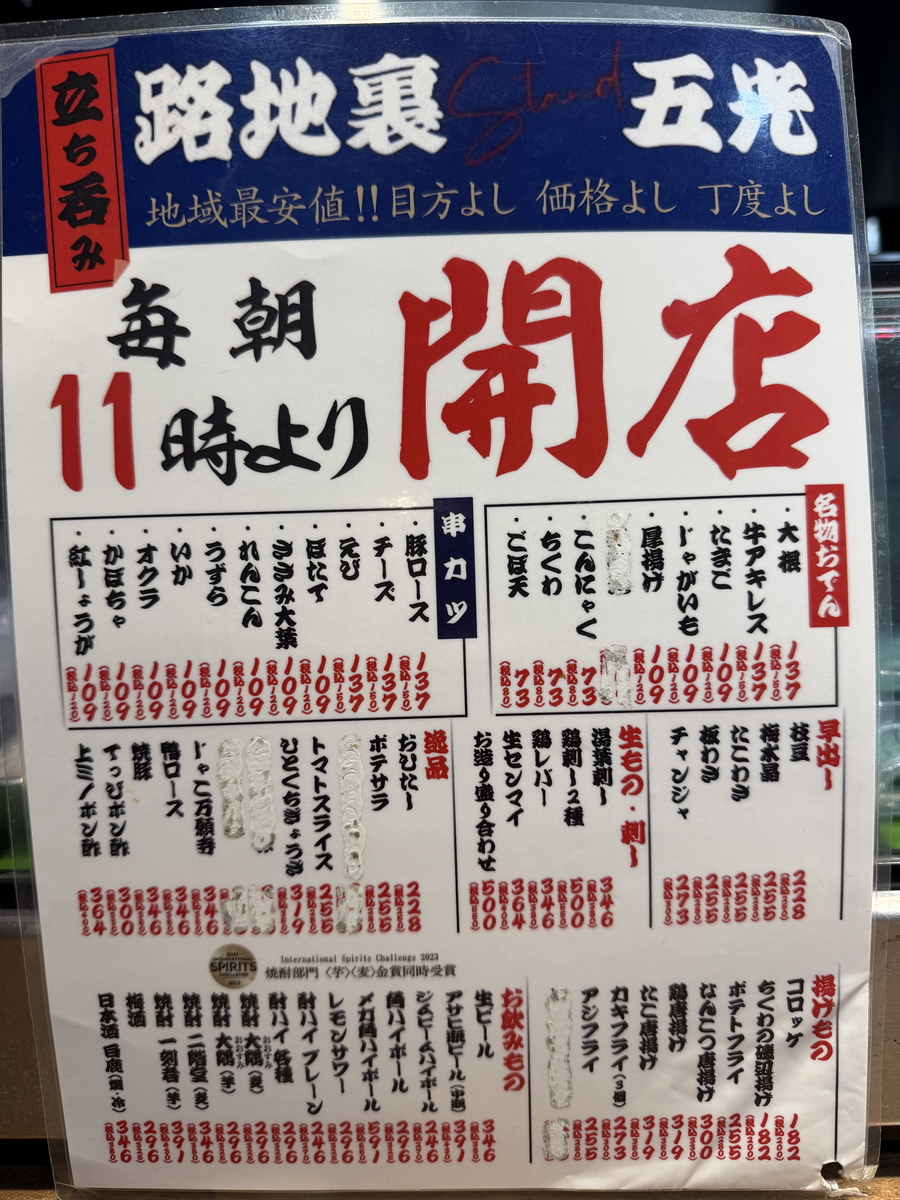 京都市右京区にある立ち飲み屋さん「路地裏stand五光」に行きました。