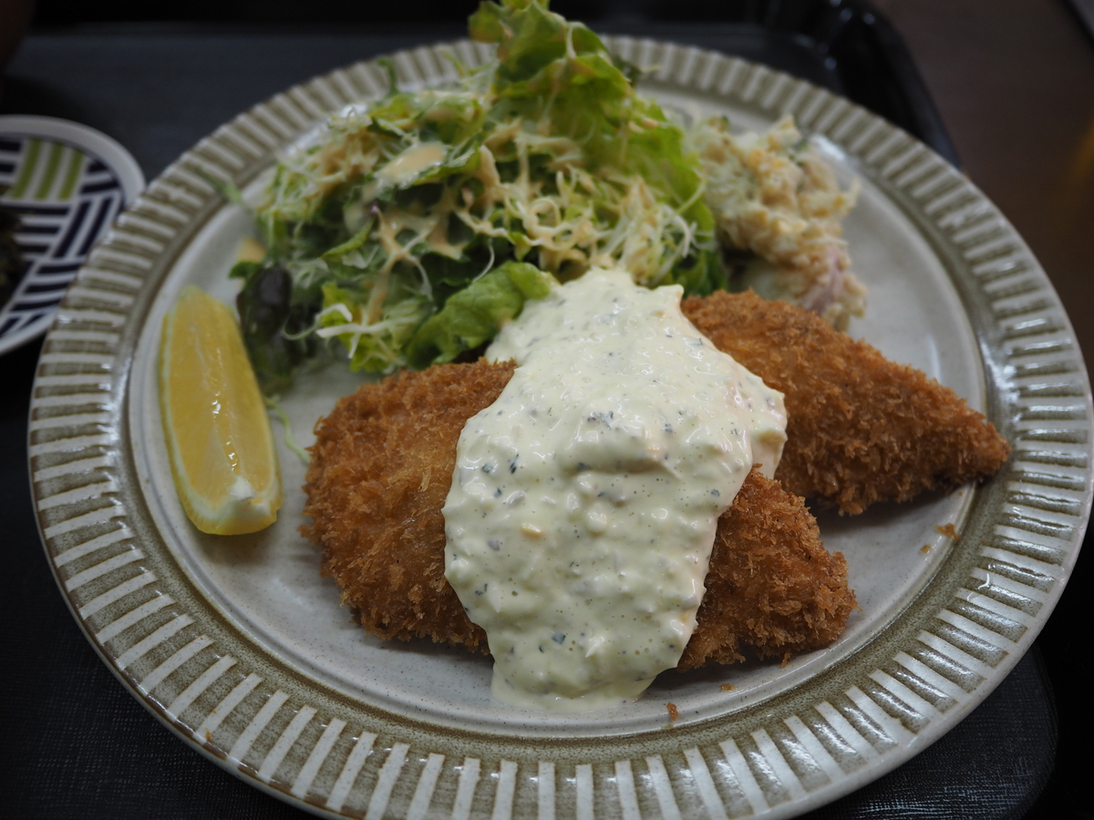 肉厚のサーモンフライに自家製タルタルがたっぷりかけられて悩ましですね~!