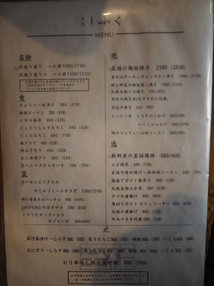 天六にある海鮮居酒屋「魚処しふく 天満店」に行きました。