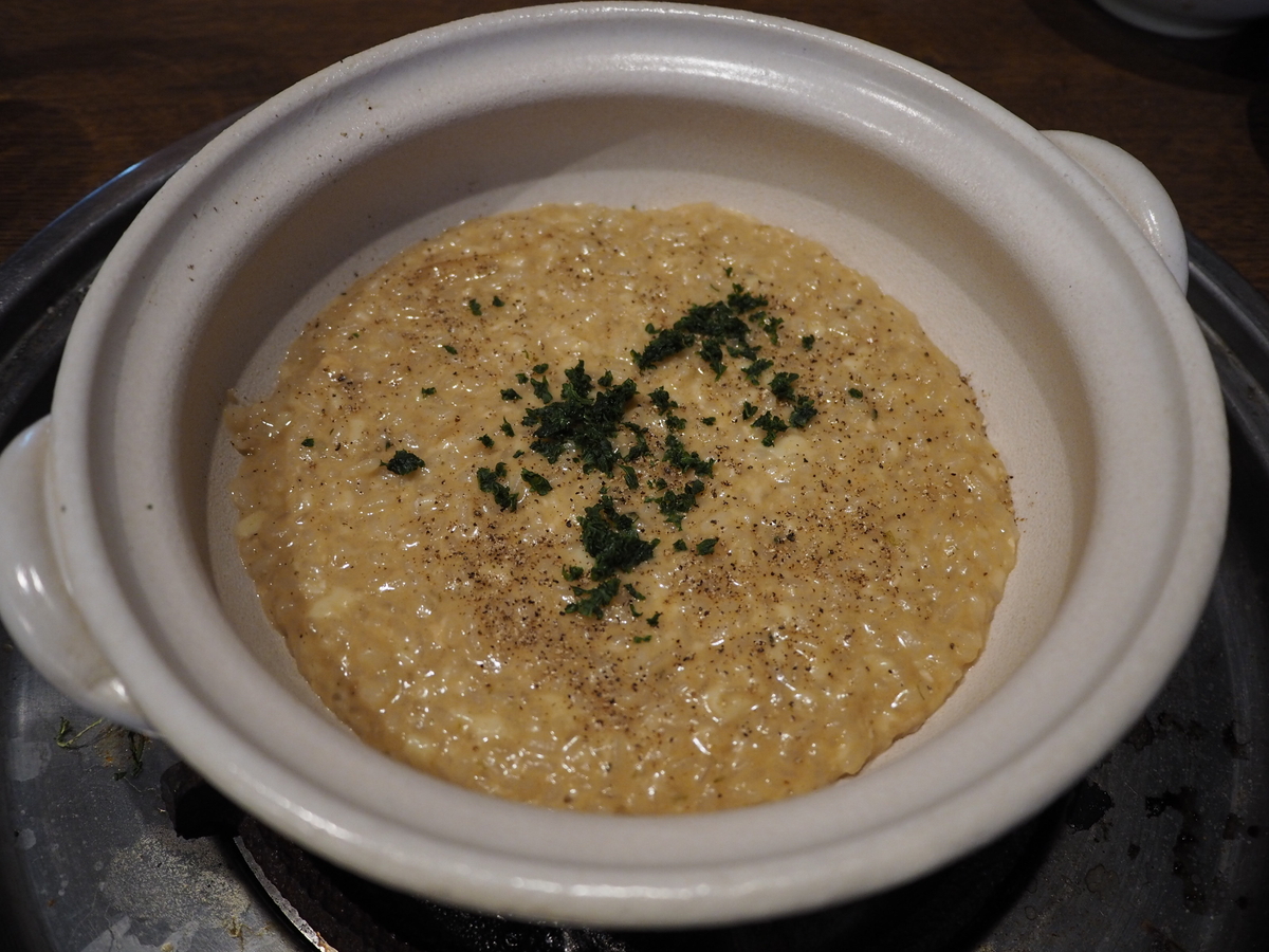 お鍋を食べ終えるとお鍋が一旦回収され、厨房でリゾットを調理して持ってきてくださいます!