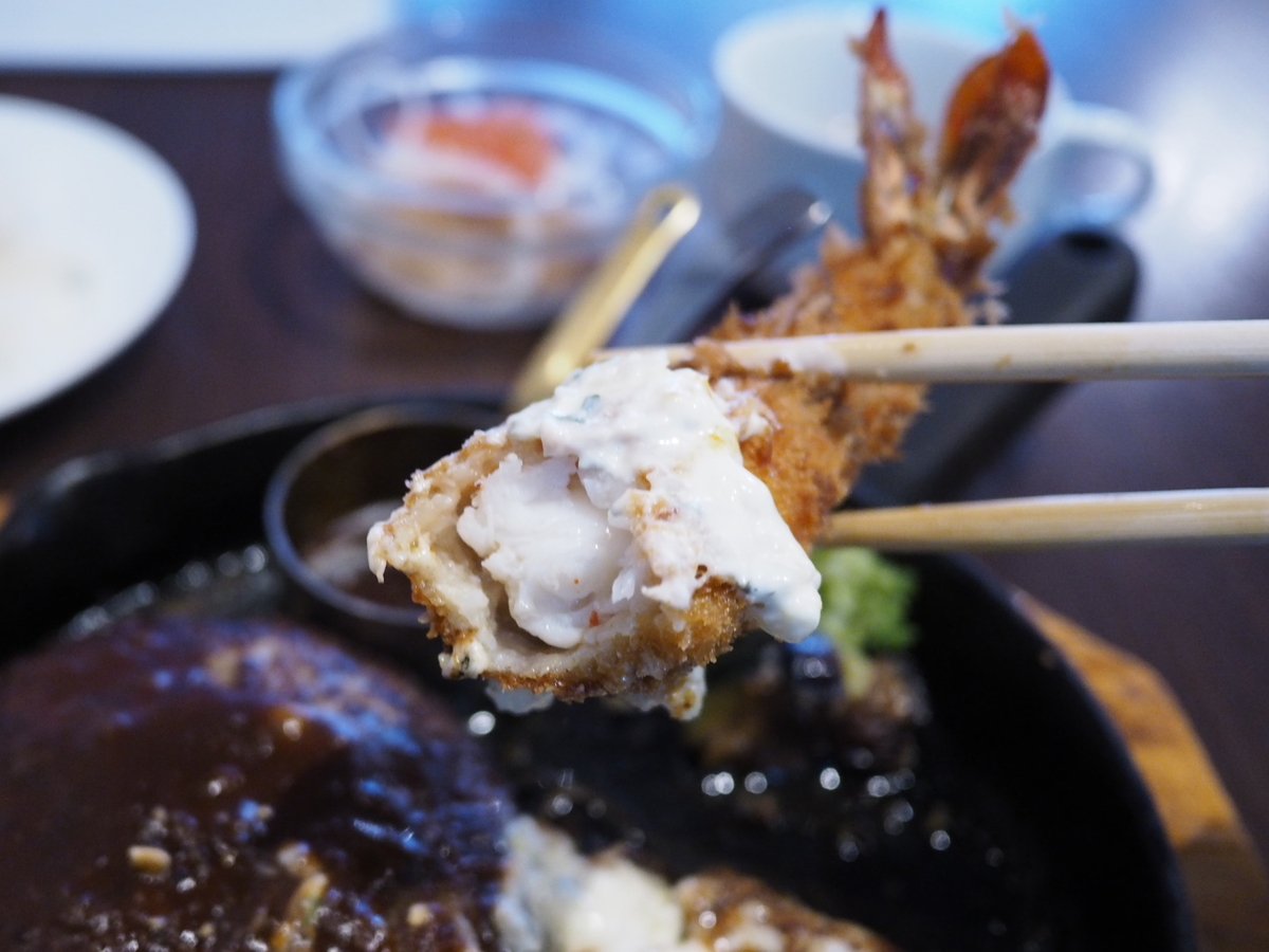 プリップリの海老は太くて食べ応え満点で、タルタルが抜群にマッチしてめちゃくちゃ旨い!