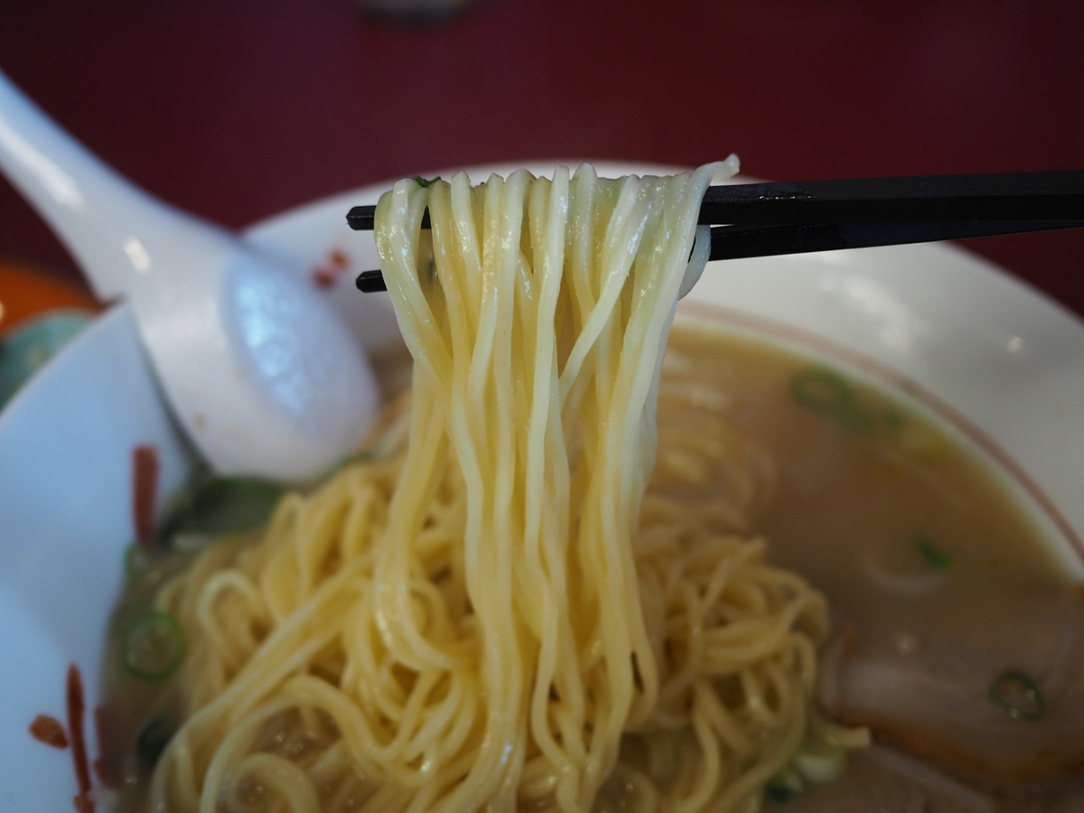 しなやかな腰でツルツルの食感の麺に激ウマスープがしっかり絡んで美味しいです!