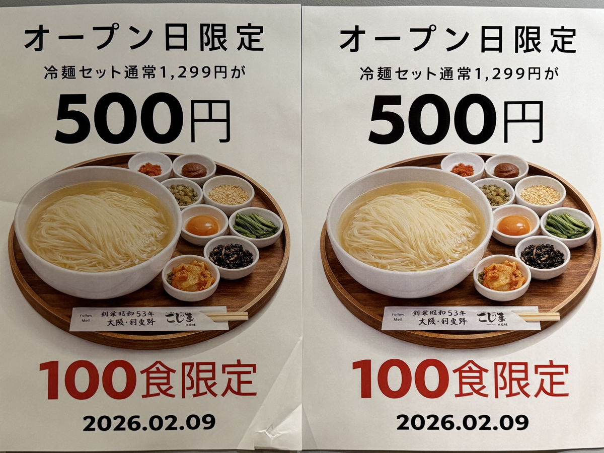 オープン日の2026年2月9日に、100食限定で通常1,428円税込が550円税込で食べられます!