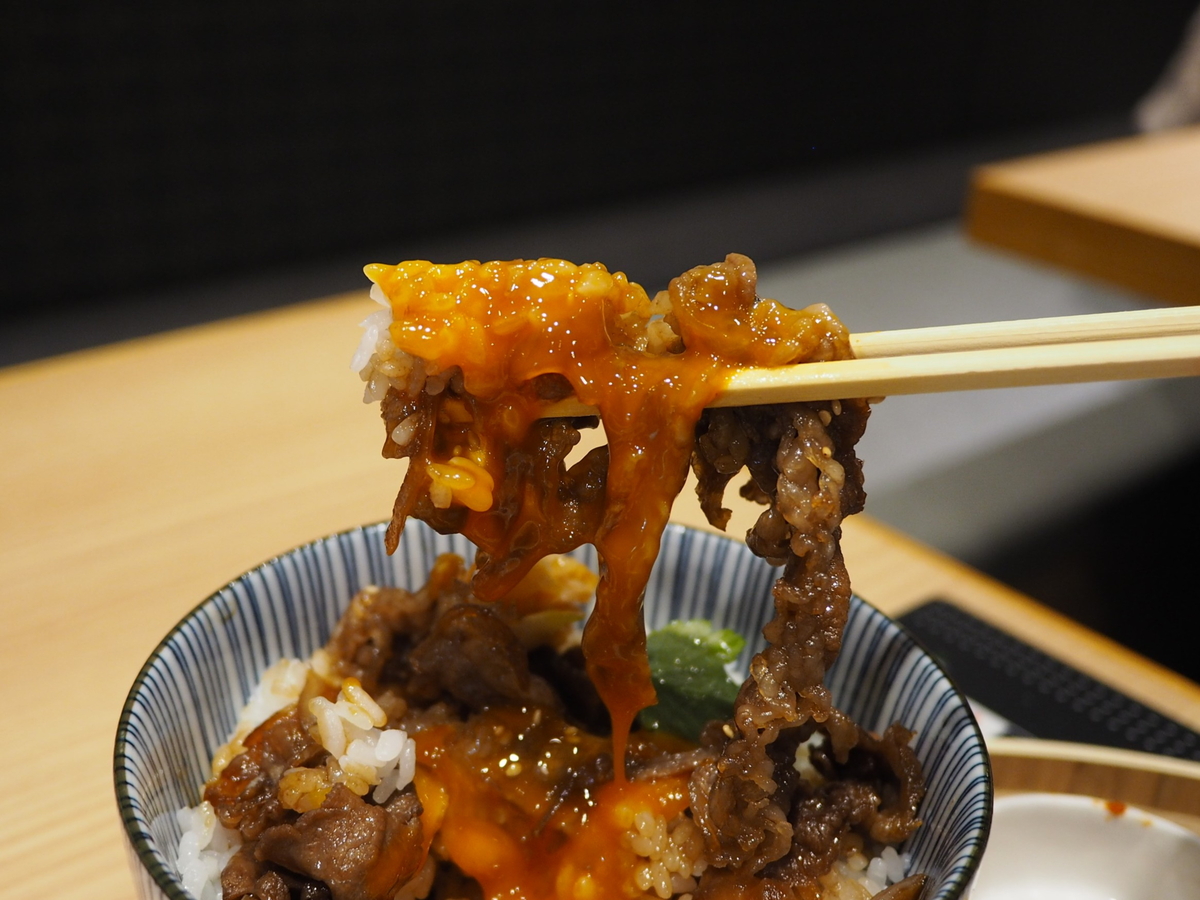 しっとり柔らかいお肉はめちゃくちゃ甘く、タレと卵黄が絡んでめちゃくちゃ旨い!