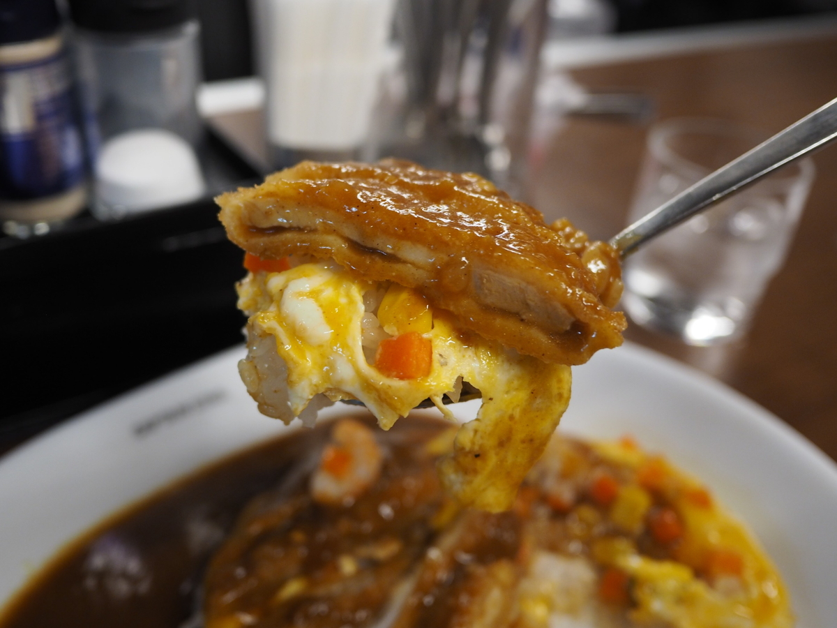 こちらは老舗ではありながらハイカラなメニューで、カツカレーとかつ丼のハイブリッドです!
