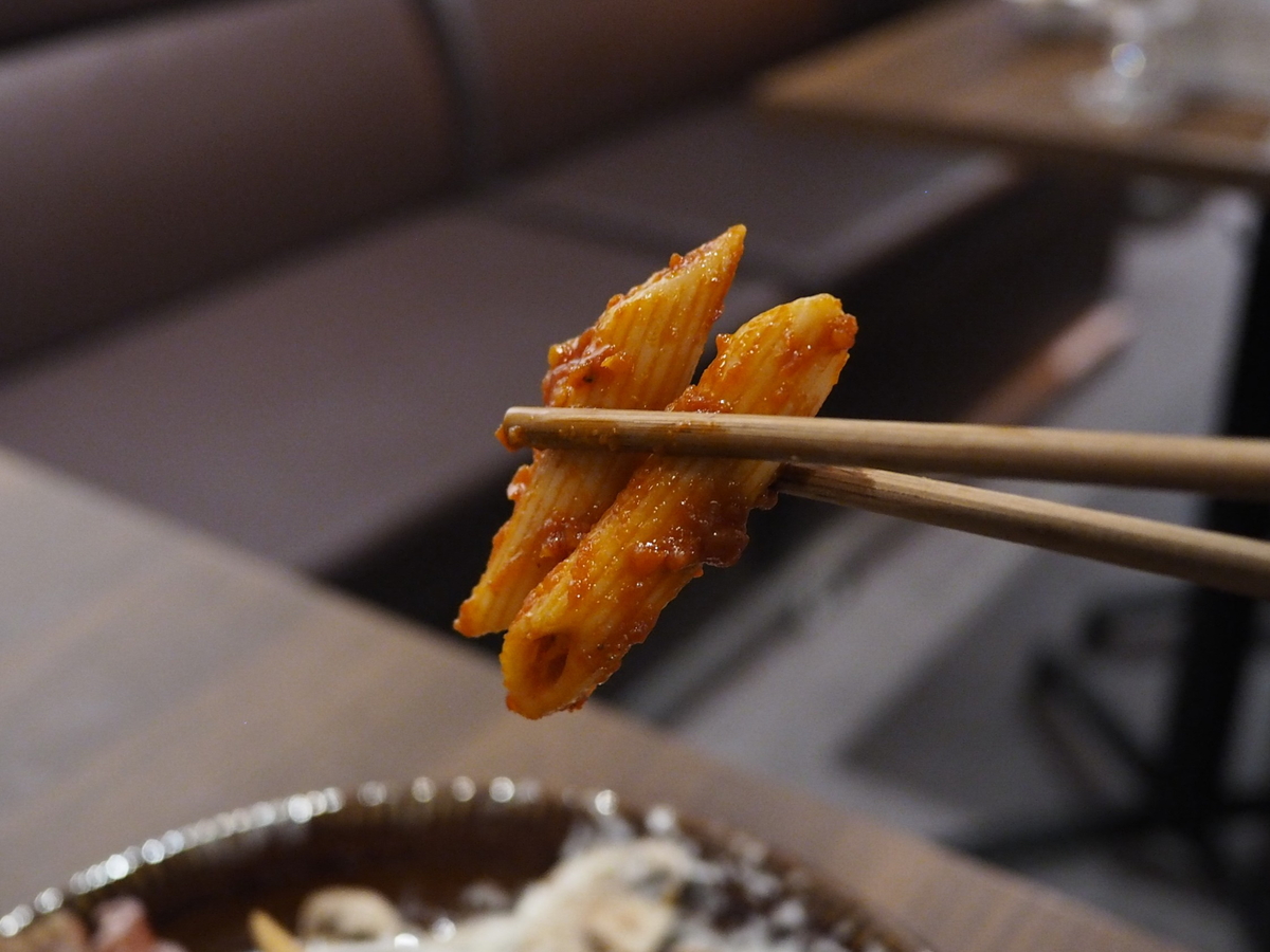 スタッフの方が卓上でミートソースをかけてくださいます!