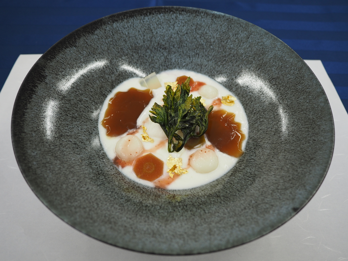 優秀賞は「グランドニッコー淡路」の和田藍斗さんの「海苔香る淡路島牛柄ミルクフラン淡路島牛乳リゾットコロッケ」です!