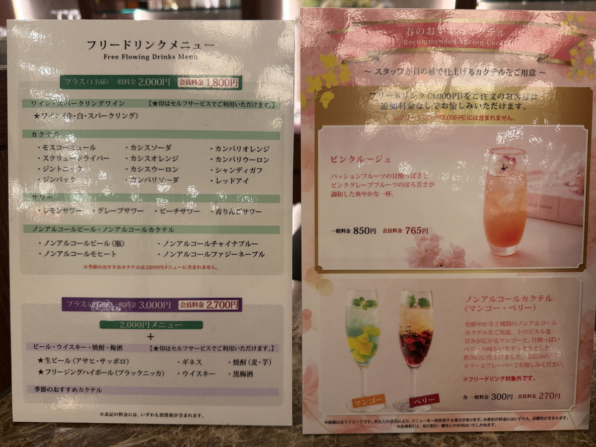 ドリンク飲み放題は2,000円~用意されています。