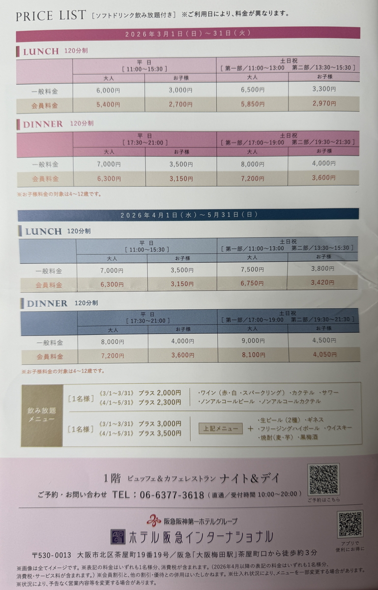梅田のホテル阪急インターナショナル1階にある「ビュッフェ&カフェレストラン ナイト&デイ」に行きました。