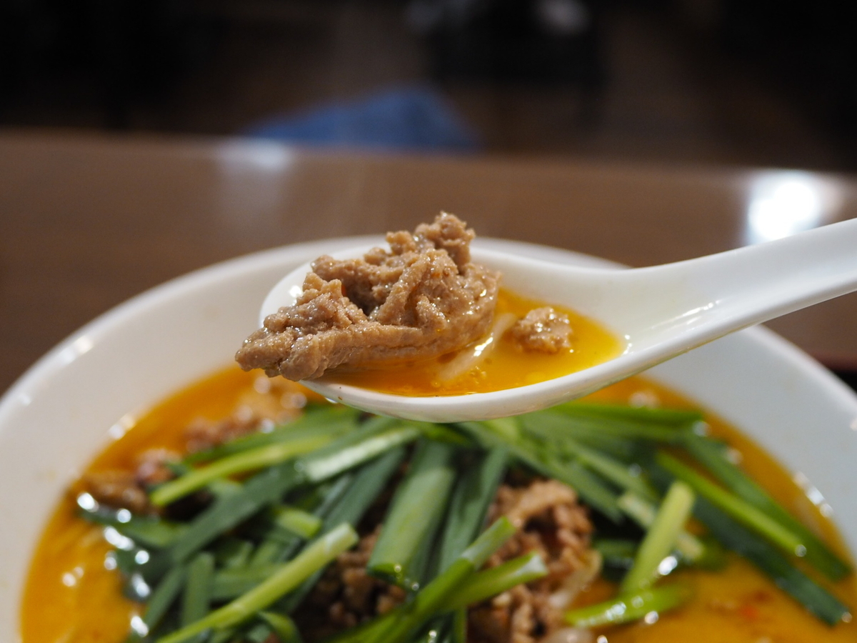 豚骨の旨味とコクが濃厚でほのかにピリ辛で、肉味噌にもしっかり味が付いていてめちゃくちゃ旨い!