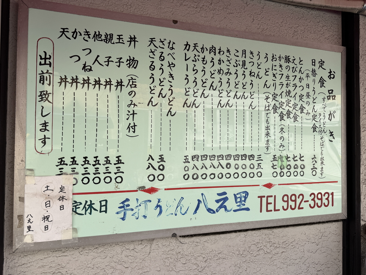 本日のランチは守口市にあるうどん屋さん「手打ちうどん 八之里」に行きました。