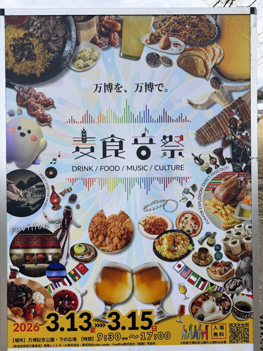 本日のランチは今日から吹田市の万博記念公園で開催されているアフター万博「麦食音祭2026~アフターEXPO~」に行ってきました!