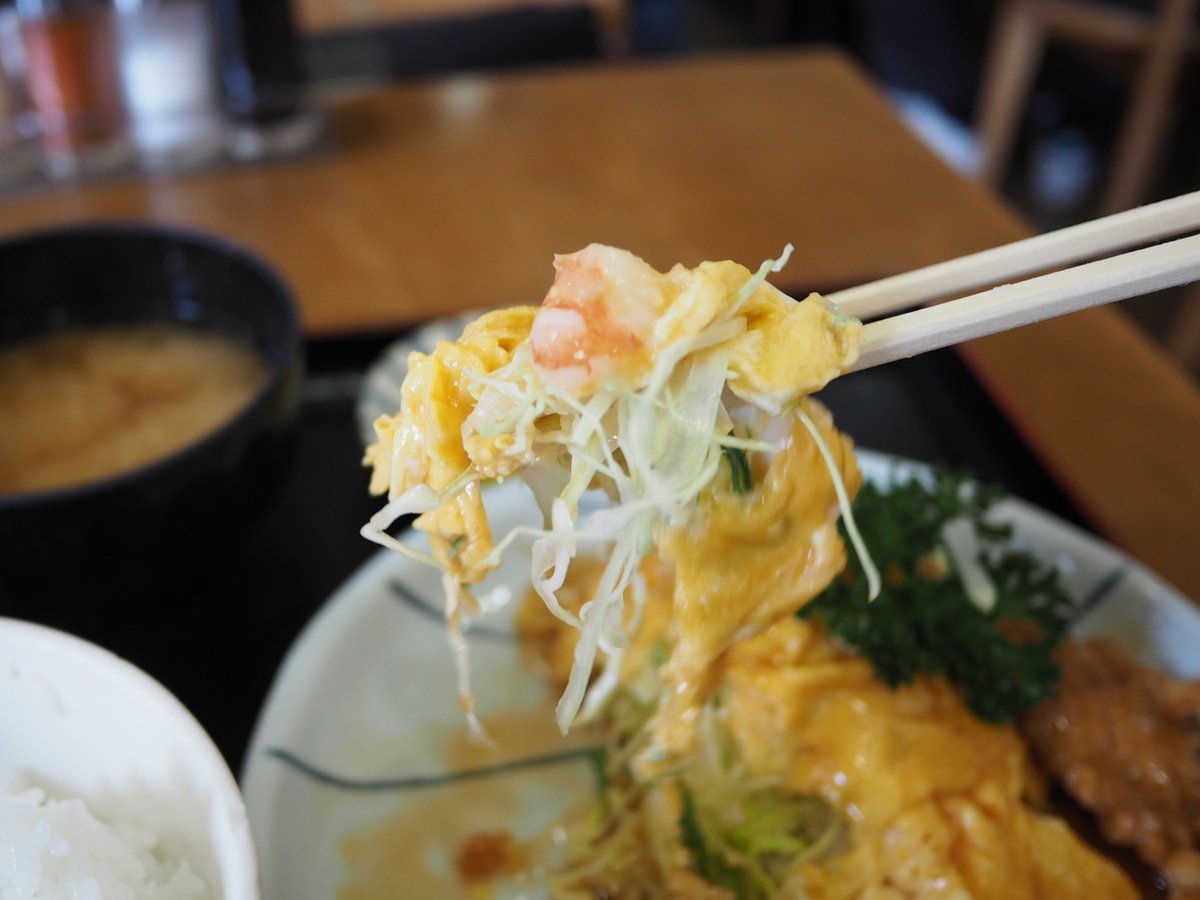 トロトロ玉子とシャキシャキキャベツのコントラストが心地よく、甘酢が絡んで美味しいです!