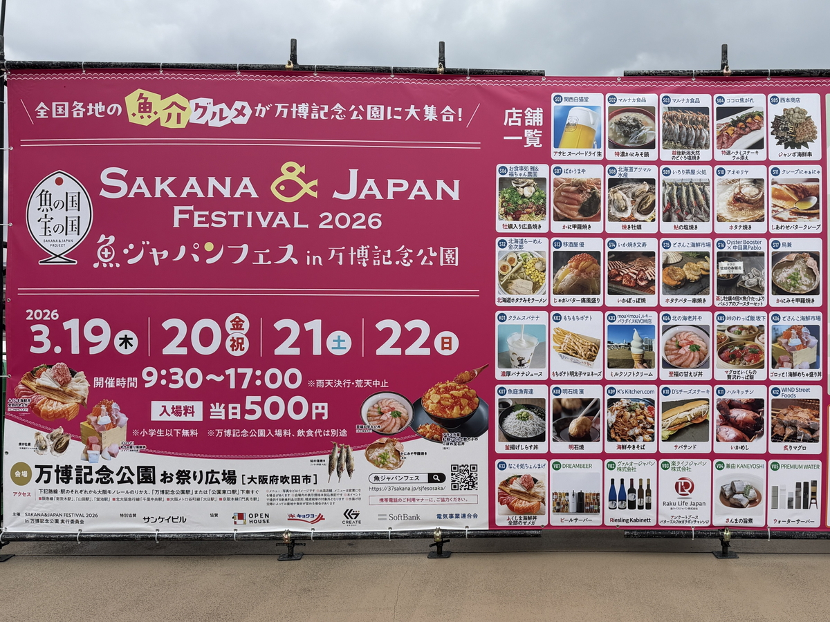 本日のランチは今日から万博記念公園で開催されている「魚ジャパンフェス2026」に行きました。