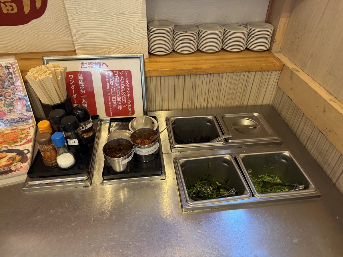 薬味無料のサービスカウンターがあるのが嬉しいですね!