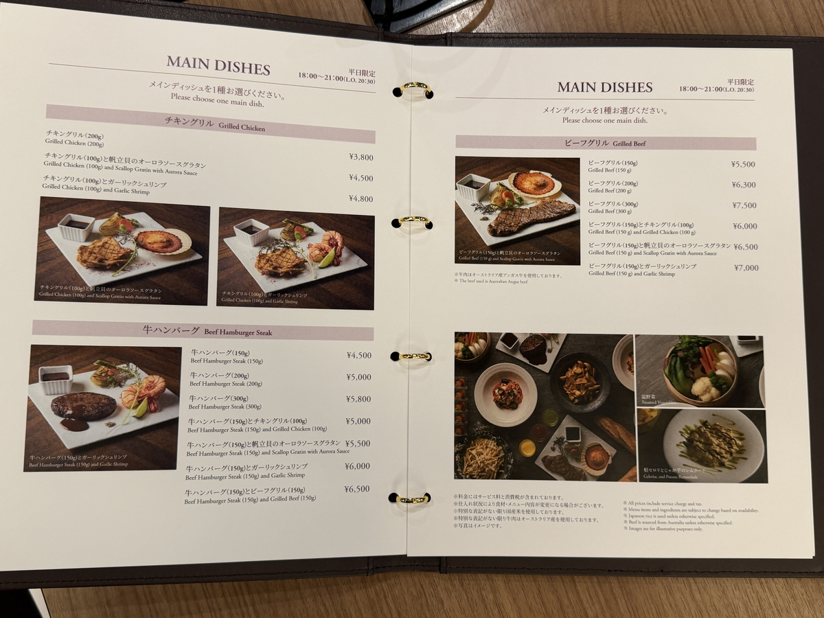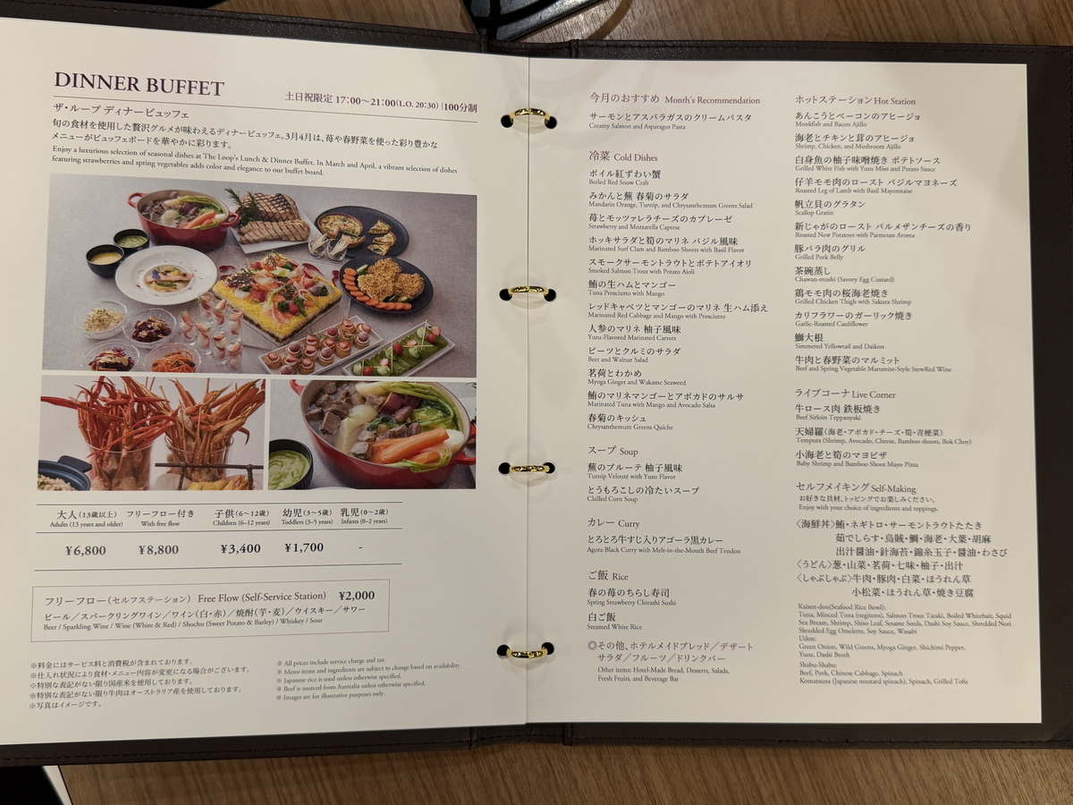 一番安いメイン料理は3,000円のパスタなので、たった3,000円で一流ホテルの豪華なビュッフェが楽しめます!