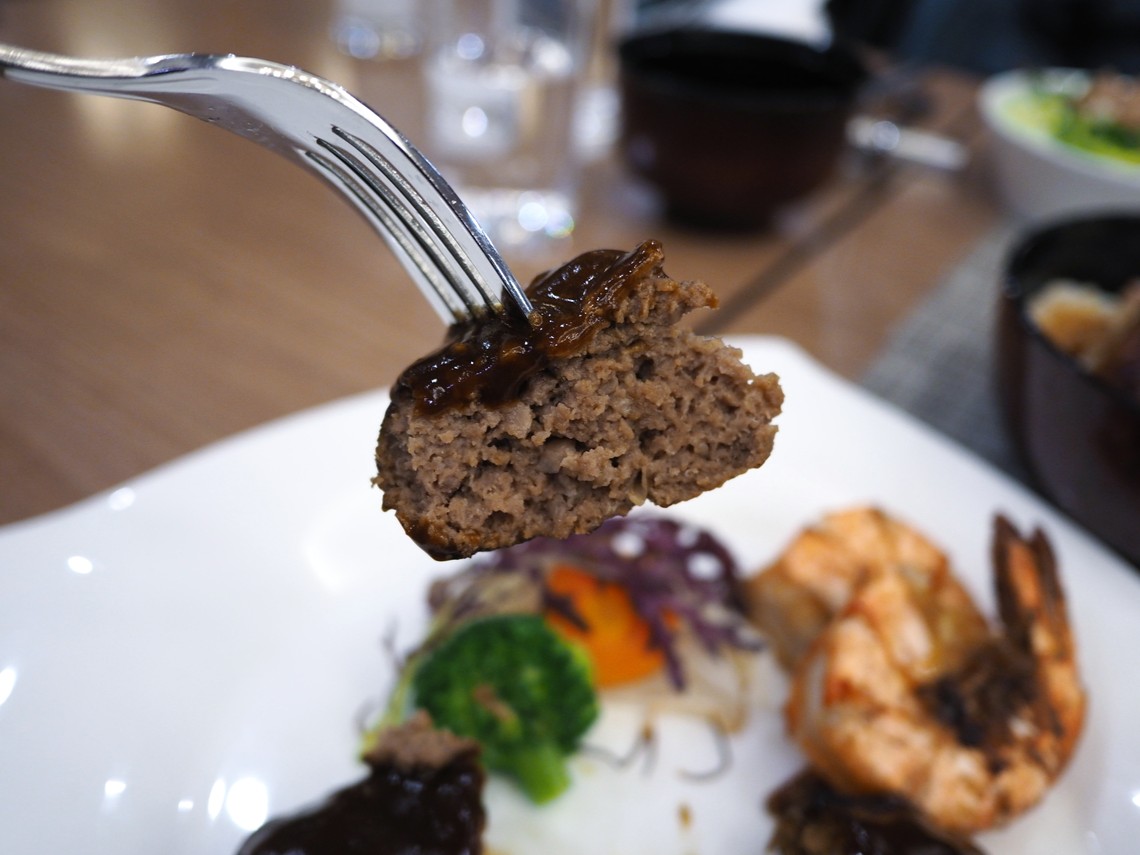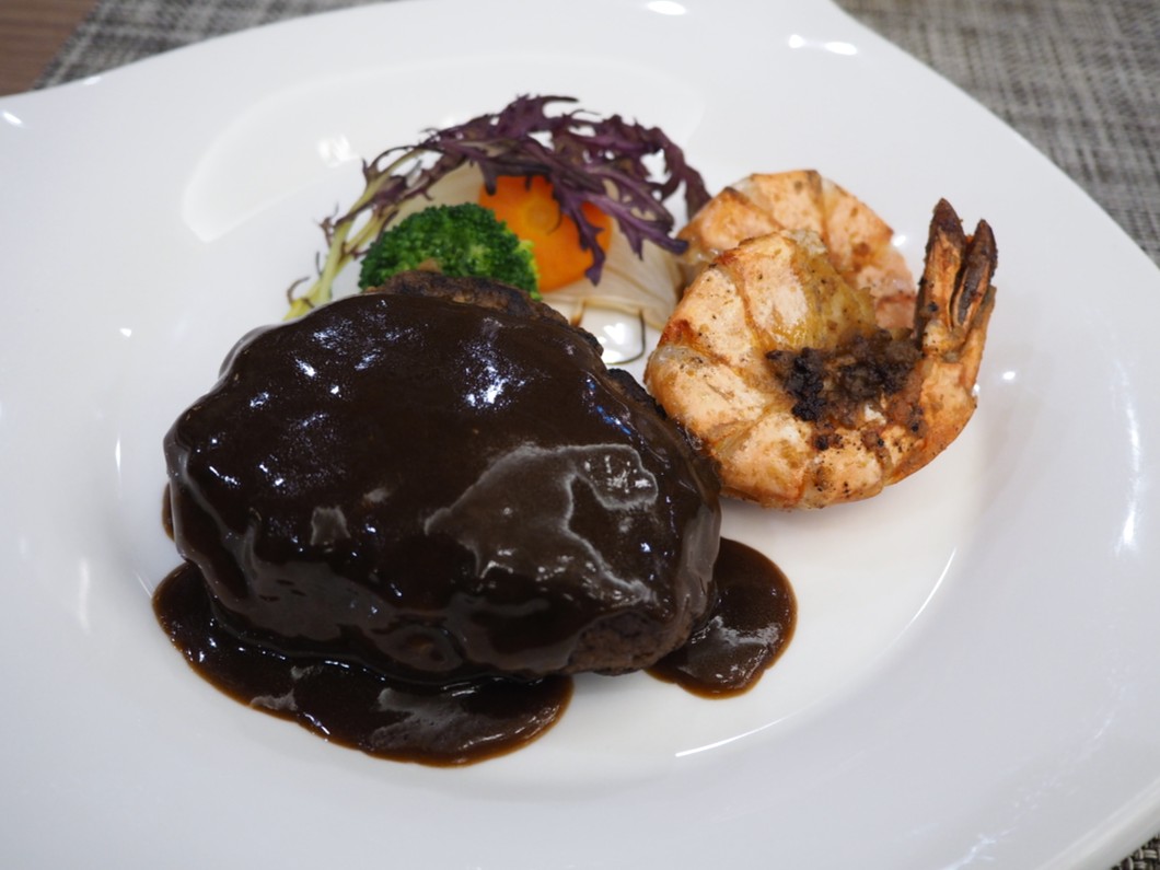 お肉がしっかり詰まったハンバーグは高級感あふれるデミグラスソースが絡んでめちゃくちゃ旨い!