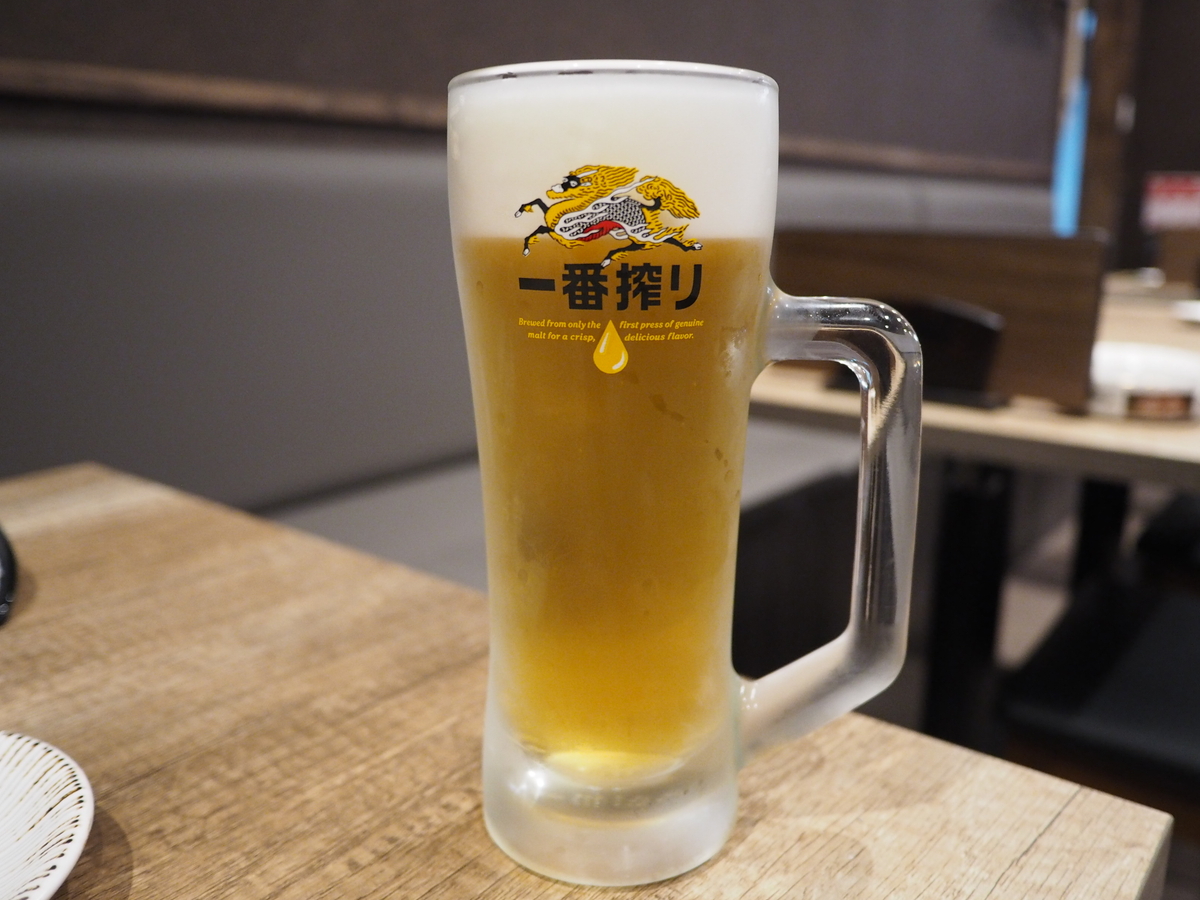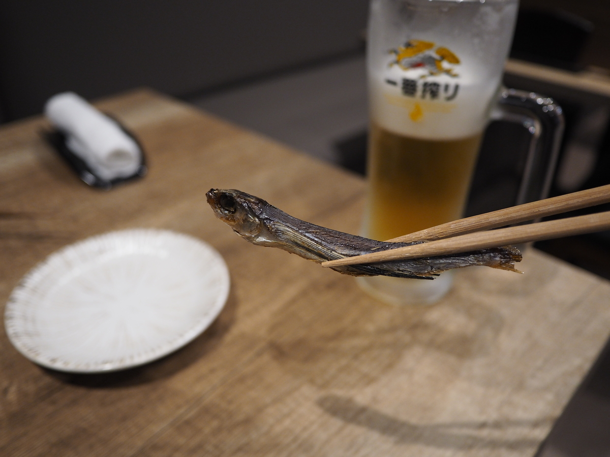 突きだしの「鹿児島県産さつまあげ」(440円税込)をいただきながら生ビール(゚Д゚)プハー!