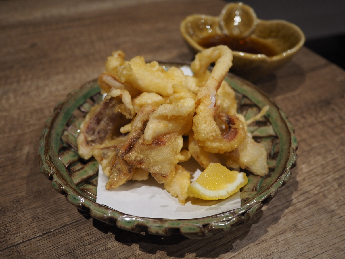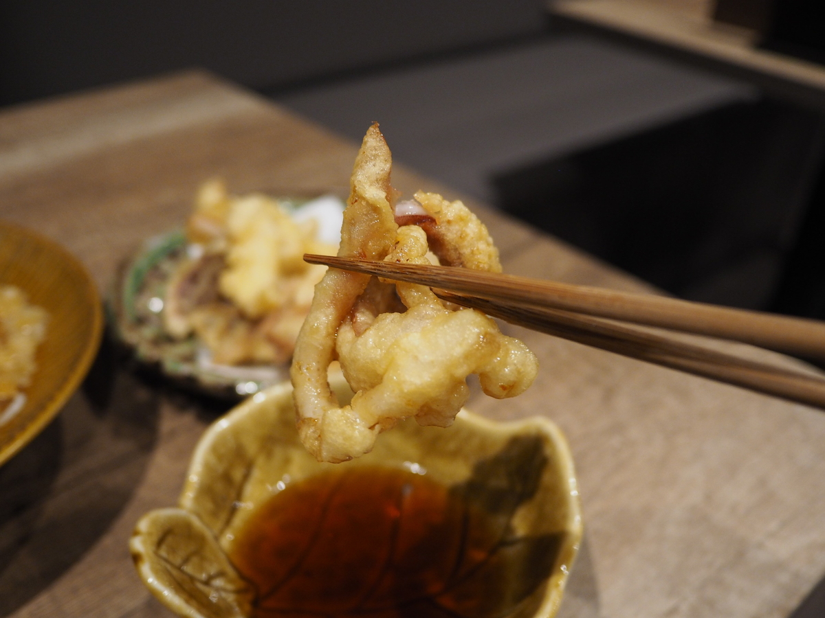呼子のイカのお造りを食べ終えたら、ゲソとエンペラの部分が残るので、それを返すと天ぷらにして持ってきてくださいます!
