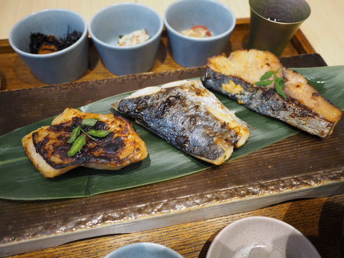 3種のお魚は季節によって変わりますが、今日は富山県直送のお値打ちのブリ、サワラ、赤魚の味噌漬け焼きです!