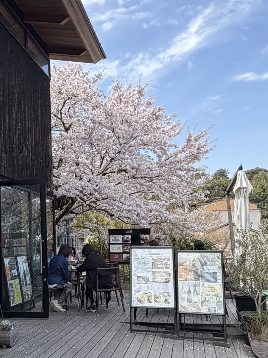 桜が満開に咲き乱れ、テラス席に座ってお花見が出来るのが素晴らしいですね(^^