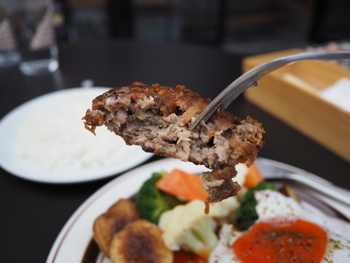 お肉がしっかり詰まったタイプで、とてもジューシーで甘みが濃厚で、高級感あふれるコクのあるデミグラスソースと一体となってめちゃくちゃ旨い!