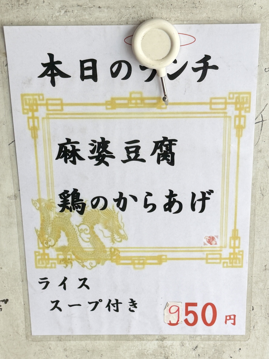その4・・・おかずがハーフサイズの鶏のから揚げ定食、ラーメンを麻婆麺に変更