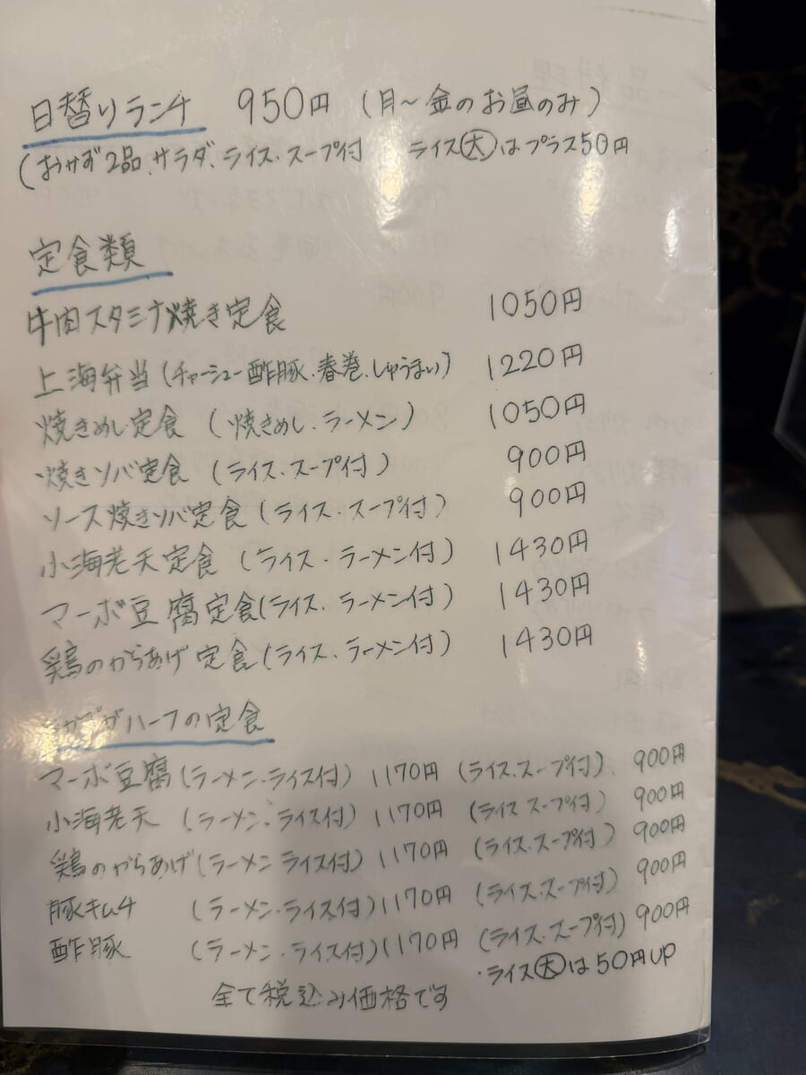 本日のランチは中央区瓦町にある中華料理屋さん「ニュー上海」に行きました。