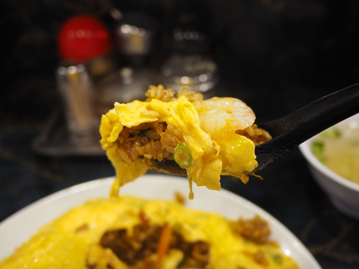 しっとり系のカレーチャーハンは超ジャンクな味わいで、玉子焼きは内側がトロトロの半熟状態でめちゃくちゃ美味しいです!