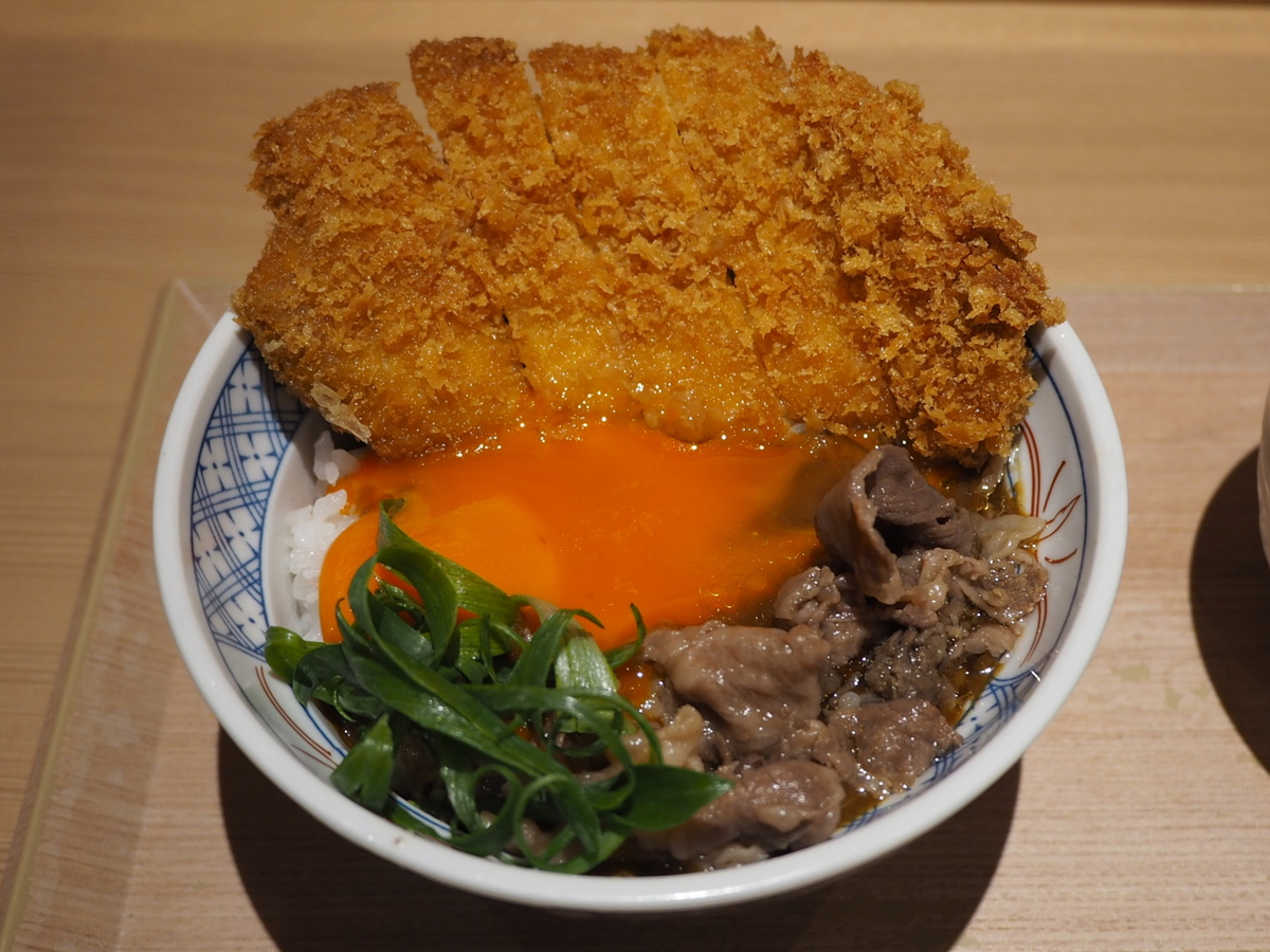 カツカレー丼の真ん中の卵黄が最初から割れていました。