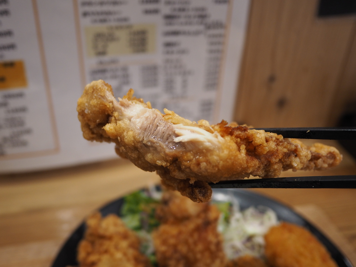 衣がカリカリサクサクでとても香ばしく、プリプリのモモ肉は素晴らしくジューシーで下味がしっかり付いていてめちゃくちゃ旨い!