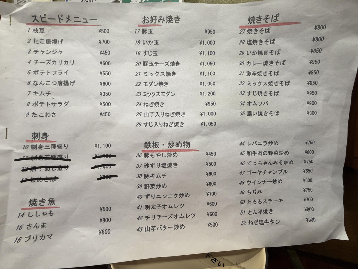 こちらはお好み焼き、焼きそば、鉄板焼きを中心に、様々な居酒屋メニューが揃うお店です!