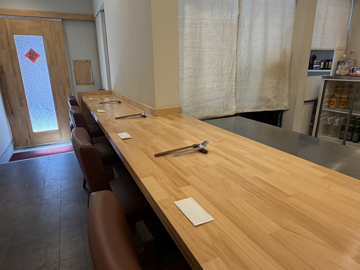 お洒落なカウンター9席の店内をご夫婦お二人で切り盛りされています。