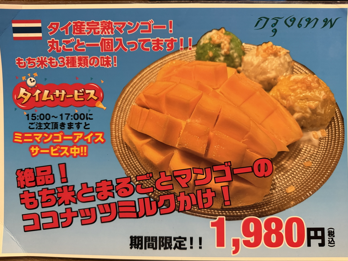 期間限定の大人気の「カオニャオ・マムアン」が始まったので早速行ってきました!